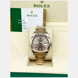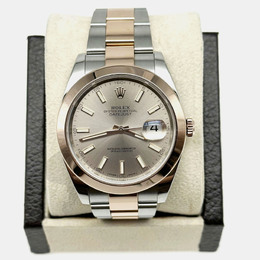 A Rolex Datejust 126301 featuring an automatic movement, classic sundust dial finish. Constructed from a combination of stainless steel and rose gold (case). The case measures 41mm in diameter, designed for men with this particular reference number.