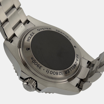 A professional grade diver's automatic wristwatch. Features a 44mm stainless steel case and black dial. Equipped with Rolex's Ringlock system for high pressure resistance, achieving water resistance up to 3900 meters. Ideal men's timepiece designed for both sea and land environments.