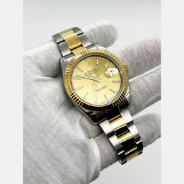 Datejust model, automatic mechanical movement, case size 41mm, champagne gold and yellow gold tones (18K gold), stainless steel bracelet included, suitable for men.