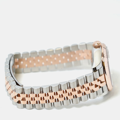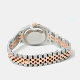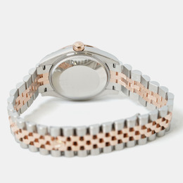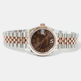 Women's automatic wristwatch featuring a velvety chocolate dial, luminous diamond hour markers, and warm rose gold accents on the stainless steel bracelet. Case size is mid-sized at 31mm (reference: 1220922). Crafted in 18K Rose Gold with a rich chocolate tone.