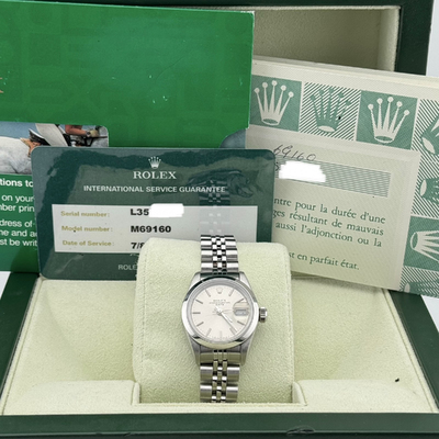 A women's automatic silver stainless steel Rolex Datejust with a case diameter of 26 mm, model number 69160 and reference 1221919.
