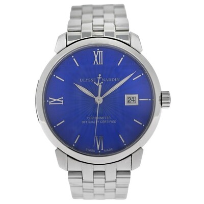Silver-tone stainless steel case and bracelet with fixed silver-tone bezel. Features a white dial displaying analog time using silver-tone hands and luminous index markers. Includes date display at the 3 o'clock position powered by an automatic movement. Offers round functionality viewing via its transparent see-through sapphire crystal case back. The men's watch features a fold over clasp with safety release mechanism, measuring 40 mm in diameter and water resistant up to 50 meters / 165 feet.
