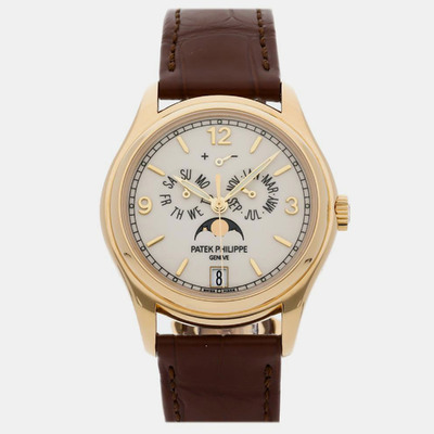 Pre-Owned Patek Philippe 5146J-001 Annual Calendar Moonphases White Dial Automatic Yellow Gold Men's Wristwatch