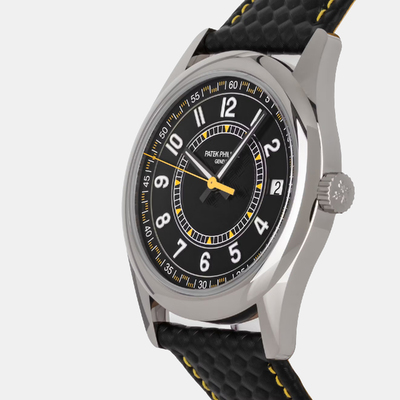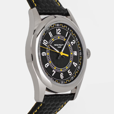 The Patek Philippe Calatrava 6007G 001 radiates understated luxury with its 40 mm 18k white gold case and sleek black dial. This pre owned automatic men’s wristwatch combines Swiss precision with classic elegance, making it a distinguished statement piece for collectors seeking timeless sophistication.