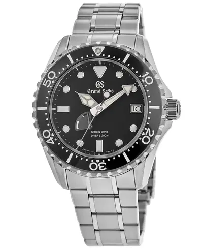 Brand New Authentic Grand Seiko Sport Collection Spring Drive Automatic Black Dial Stainless Steel Men's Luxury Watch Model SBGA461G. Brushed and Polished Stainless Steel case with Brushed and Polished Stainless Steel Bracelet watch band. Brushed and Polished Stainless Steel Deployment with Push Button clasp. Uni-Directional Rotating with Minute Markers bezel. Dial description: Luminous Silver Tone Hands with Circle & Stick Hour Markers with Minute Markers Around the Outer Rim 1 Sub-Dial and the Date at 3 o'clock on a Black dial. Spring Drive Japanese Automatic movement. Chronograph sub-dials display: Power Reserve, Date. Calendar: Date at 3 o'clock. Powered by Grand Seiko Calibre 9R65 engine with 72 hours power reserve. Watch functions: Power Reserve, Hour, Minute, Second, Date. Screw Down crown. Scratch Resistant Sapphire crystal. Round case shape. Case size: 44.20mm. Case thickness: 14mm. Solid case back. 200 Meters - 660 Feet water resistant. 5-year WatchMaxx warranty. Also known as model: SBGA461.
