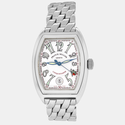 The Franck Muller Conquistador 8000SC combines a robust 35 mm stainless steel case with an automatic movement. Known for its bold numerals and tonneau shape, this men’s watch delivers the distinct style and engineering associated with the Franck Muller name.