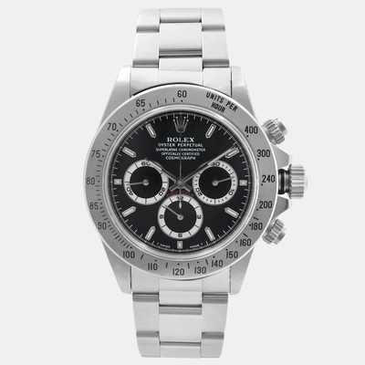 The Rolex Daytona 16520 is a celebrated model with a black dial and stainless steel case. Its automatic chronograph movement and 40mm size make it a reliable and collectible choice among Daytona enthusiasts.