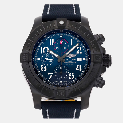 This pre owned Breitling Super Avenger Night Mission features a black titanium case with a blue dial and military style strap. Its chronograph function and rugged design make it ideal for sports and adventure enthusiasts.