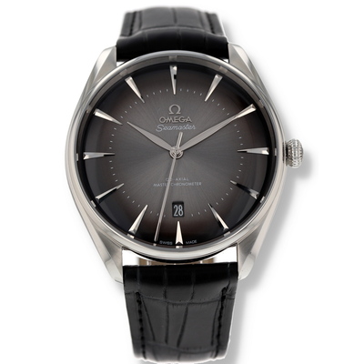 Silver-tone stainless steel case with a black leather strap. Fixed silver-tone stainless steel bezel. Grey dial with silver-tone hands and index hour markers. Minute scale around the inner rim. Dial Type: Analog. Date display at the 6 o'clock position. Omega Calibre 8800 Automatic movement, containing 35 Jewels, bitting at 25200 vph, and has a power reserve of approximately 55 hours. Scratch resistant sapphire crystal. Pull / push crown. Transparent case back. Round case shape, case size: 39.5 mm. Tang clasp. Water resistant at 60 meters / 200 feet. Functions: date, hour, minute, second, co-axial escapement, chronometer, magnetic resistant. Specialties Paris Seamaster Series. Luxury watch style. Watch label: Swiss Made. Pre-owned Omega Specialties Paris Seamaster Automatic Chronometer Grey Dial Mens Watch 511.13.40.20.06.001.