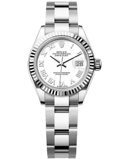 18K White Gold and Brushed Polished Stainless Steel case, Polished Silver Tone hands and Roman numeral hour markers on a White dial, Date function at 3 o'clock, Screw-down crown, Scratch Resistant Sapphire crystal, Fluted bezel, Fixed, Automatic Chronometer movement (Calibre 2236), 55-hour power reserve, Oyster Bracelet with Brushed Polished Stainless Steel Oysterclasp, 28mm case size, Solid case back, 100 meters / 330 feet water resistance, 8-year WatchMaxx warranty, Brand New Authentic, Model M279174-0020.