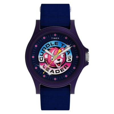 Timex X Fortnite Acadia Mens Watch TW2Y46200 Blue Resin Case, Blue Fabric Strap, Analog Quartz Movement, Blue Dial with Silver Hands and Index Markers, Fixed Resin Bezel, Acrylic Crystal, Pull Crown, Solid Case Back, Round 40mm, Water Resistant 50m, Casual Style