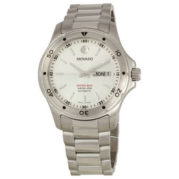 Stainless steel case with a stainless steel bracelet. Fixed bezel. Silver dial with silver tone hands and stick hour markers. Minute markers around the outer rim. Day-date at the 3 o'clock position. Automatic movement. Scratch resistant sapphire crystal. Case diameter: 40 mm. Case thickness: 12 mm. Deployment clasp. Water resistant at 200 meters/660 feet. Functions: hours, minutes, seconds, day-date. Movado Series 800 Sub-Sea Performance Mens Watch.