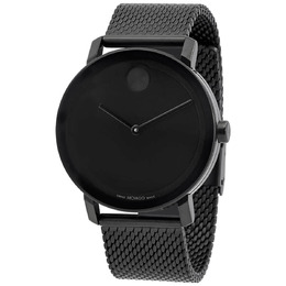 Blackip stainless steel case with a blackip stainless steel mesh bracelet. Fixed blackip stainless steel bezel. Black dial with black hands. Movado dot appears at the 12 o'clock position. Dial Type: Analog. Quartz movement. Scratch resistant K1 crystal. Pull / push crown. Solid case back. Round case shape, case size: 40 mm. Sliding clasp. Water resistant at 30 meters / 100 feet. Functions: hour, minute. Bold Evolution Series. Casual watch style. Watch label: Swiss Made. Movado Bold Evolution Quartz Black Dial Unisex Watch 3600792.