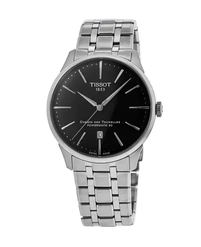 Authentic Brand New Tissot Chemin des Tourelles Powermatic 80 Unisex Watch with Grey Dial and Steel Caseband. Features automatic movement, scratch resistant sapphire crystal, deployment buckle clasp, date function, grey dial with silver-tone hands and index markers plus minute track around outer rim. Stainless steel case measuring 39mm diameter and 11.2mm thick equipped for transparent case back viewing. Rated at 50 meters (approx. 165 feet) water resistance depth. Includes a 2 year WatchMaxx warranty.